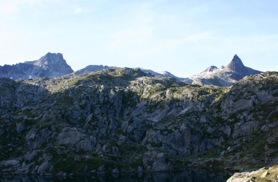 Le refuge de la Glère est la porte d'entrée d'un bassin lacustre remarquable. De sa terrasse, le contraste est grand entre la vallée profonde que vous venez de gravir et cet amphithéâtre dominé par la masse imposante du Pic du Néouvielle.